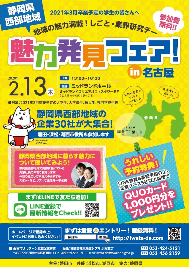 静岡県西部地区へ(特に磐田市へ)UIJターン就職をぜひ!!