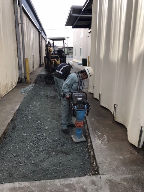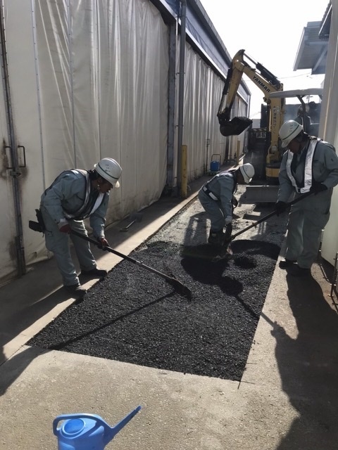 鋼材等、重量物のストックヤード前なので結構な傷み具合でして…