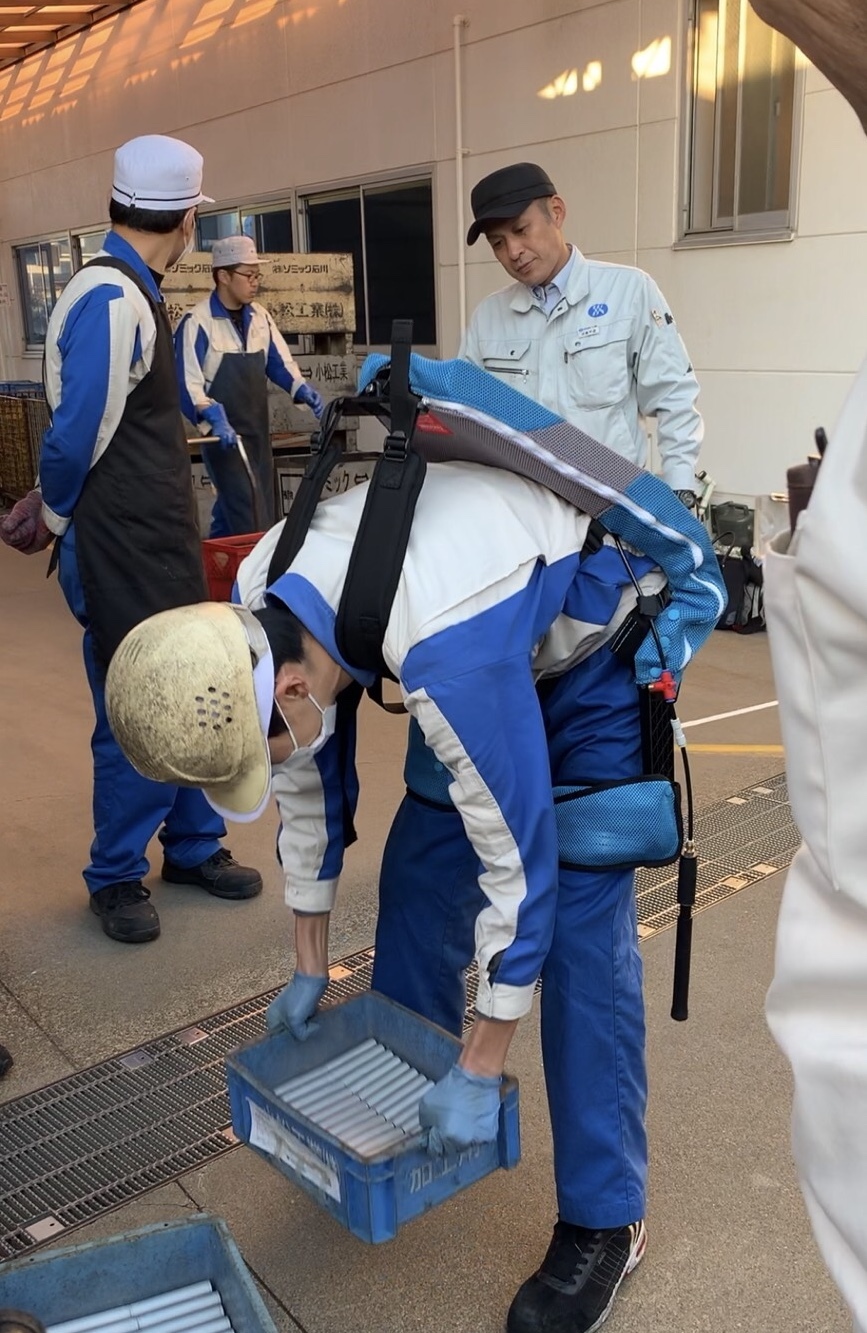 「マッスルスーツ」は、空気で稼働する人工筋肉によって装着者の動作をアシストし、つらい作業時の身体にかかる負担を軽減させることが出来ます。