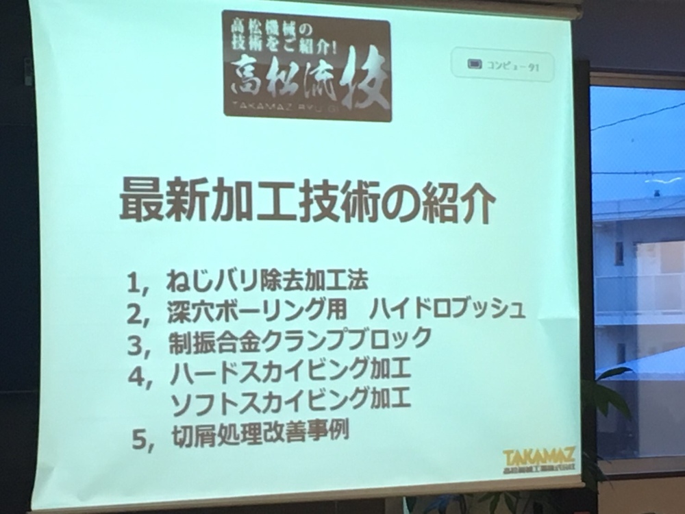 新規の設備搬入にタイミングを合わせ、最新の切削加工技術の紹介を頂きました。