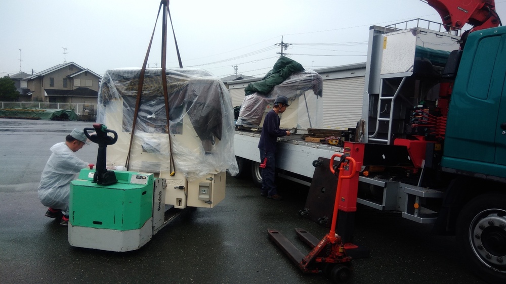 コンパクトな設備なのでハンドリフトで予定位置まで。
