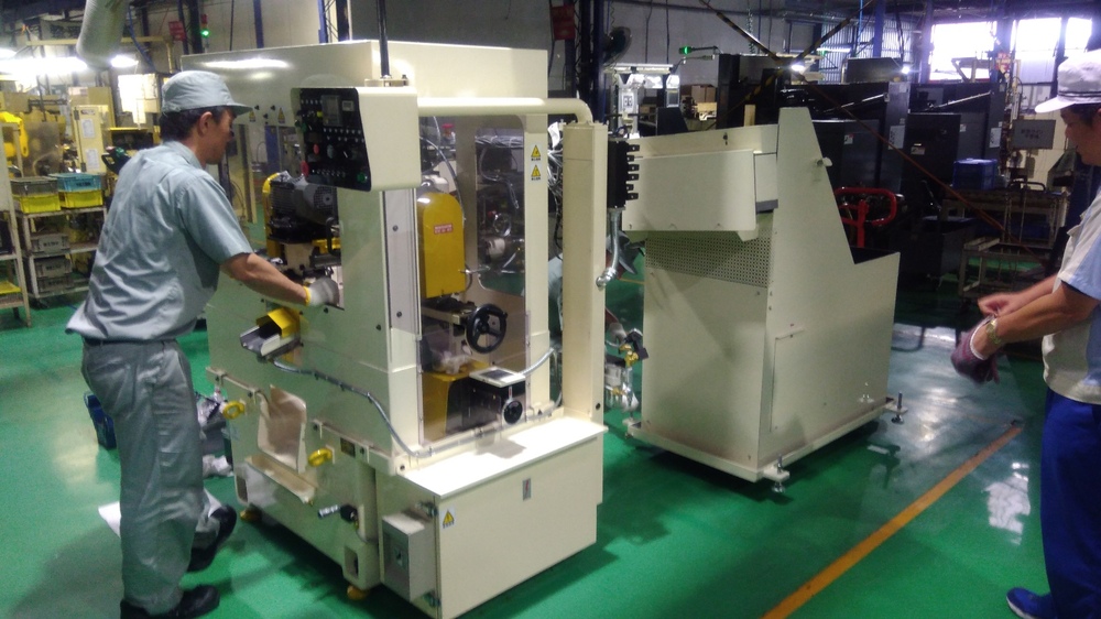 昨日から両端面取り加工機の搬入、据え付けを行っております。