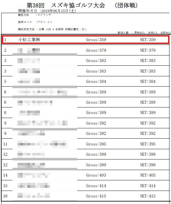 ちなみに4名のグロス合計で競い合います。