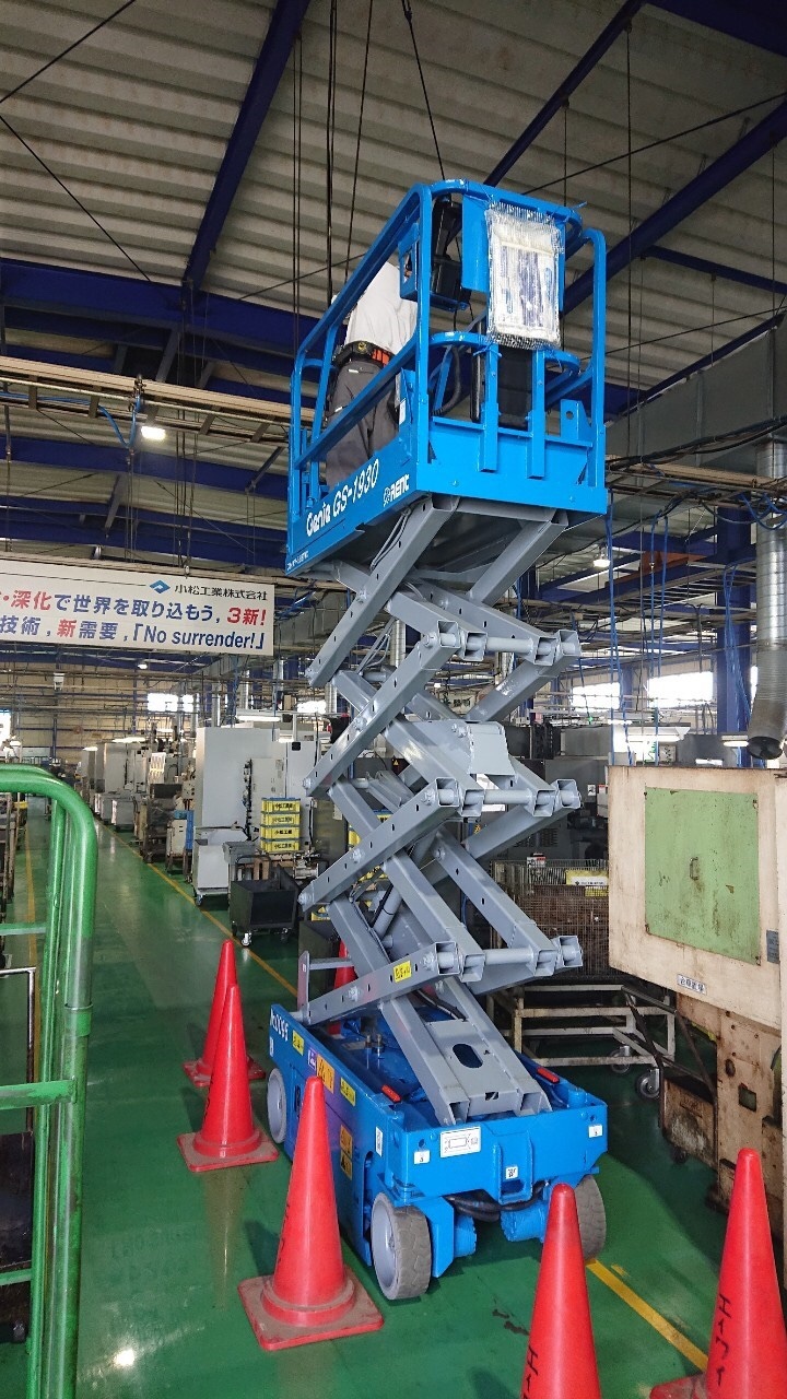 高所作業車を使い、