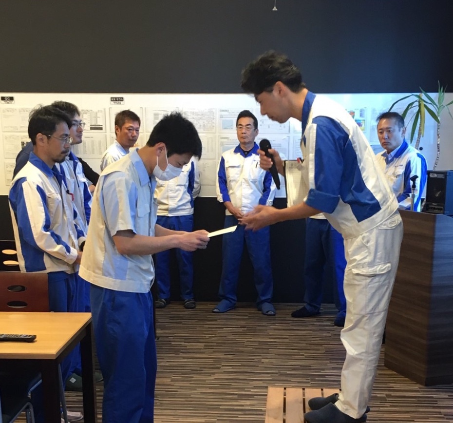 こちらは連休前に開催されました社内QC大会の表彰の模様。