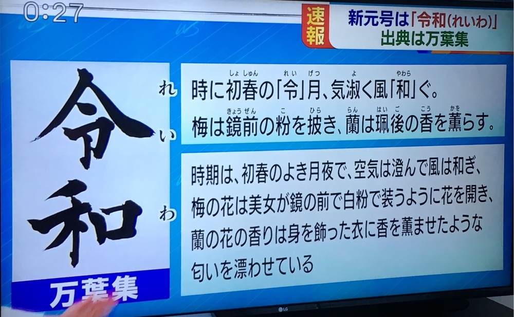 先程、新元号が「令和」と発表されました。