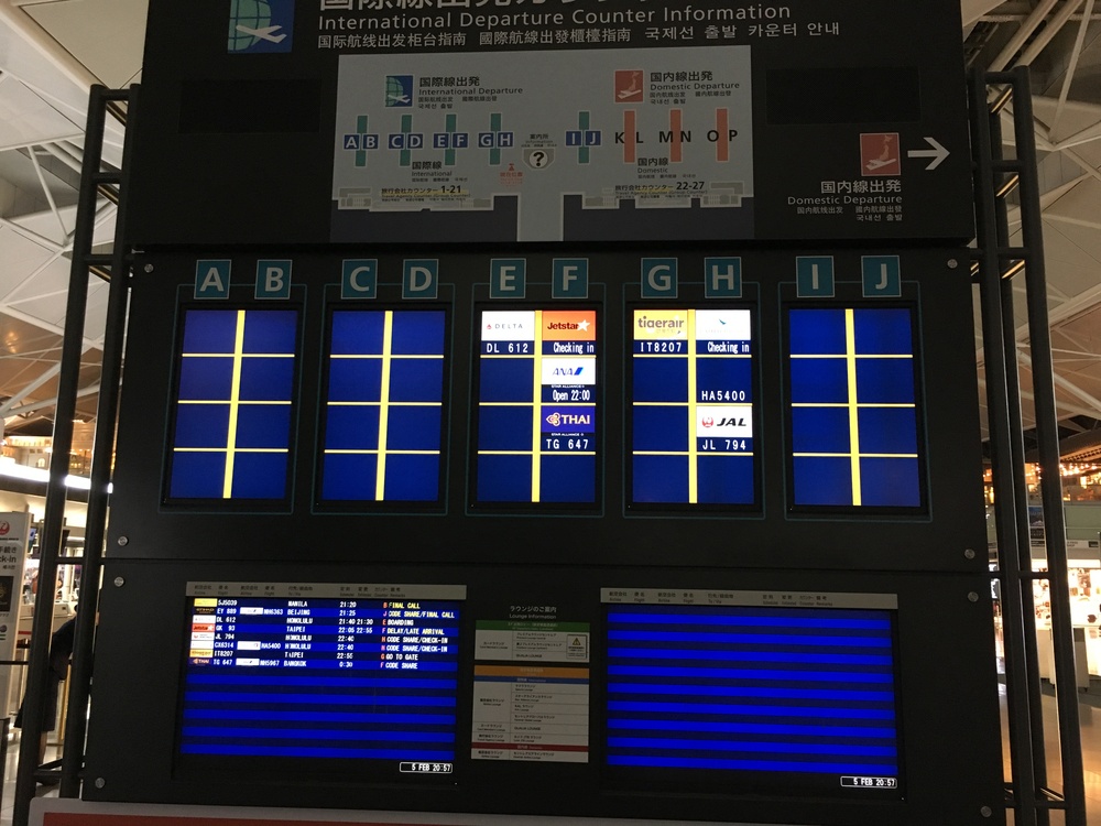 セントレアからの深夜便は数が少なく、