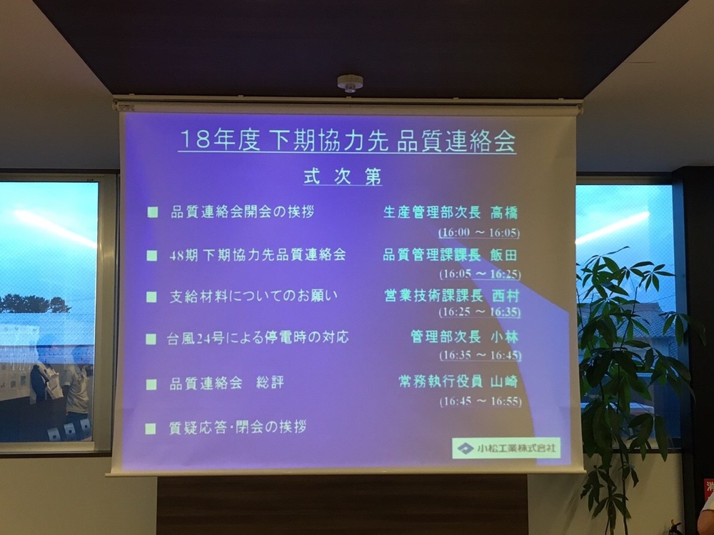 品質関係は勿論、現在の鉄鋼の入手事情や直近の台風停電時の当社の対応等を