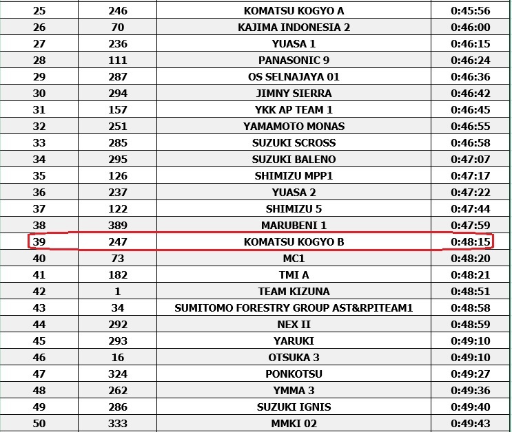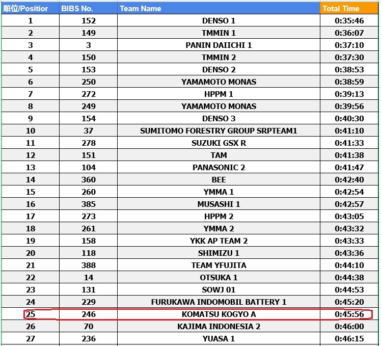 KOMATSU KOGYO A(本社社長が参加)チームが、25位