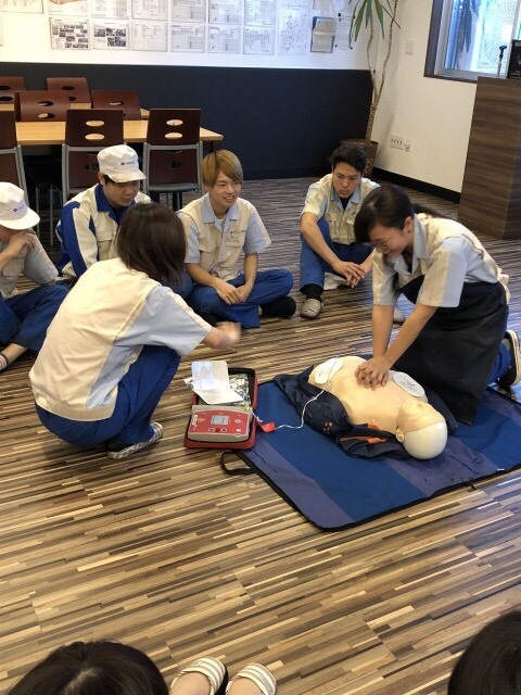 終了後にAED、心臓マッサージ・人工呼吸のレクチャーも実施しました。