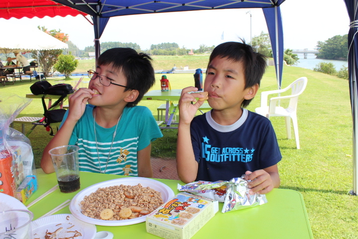 参加の子供たちには、もれなくお菓子の詰め合わせをプレゼント