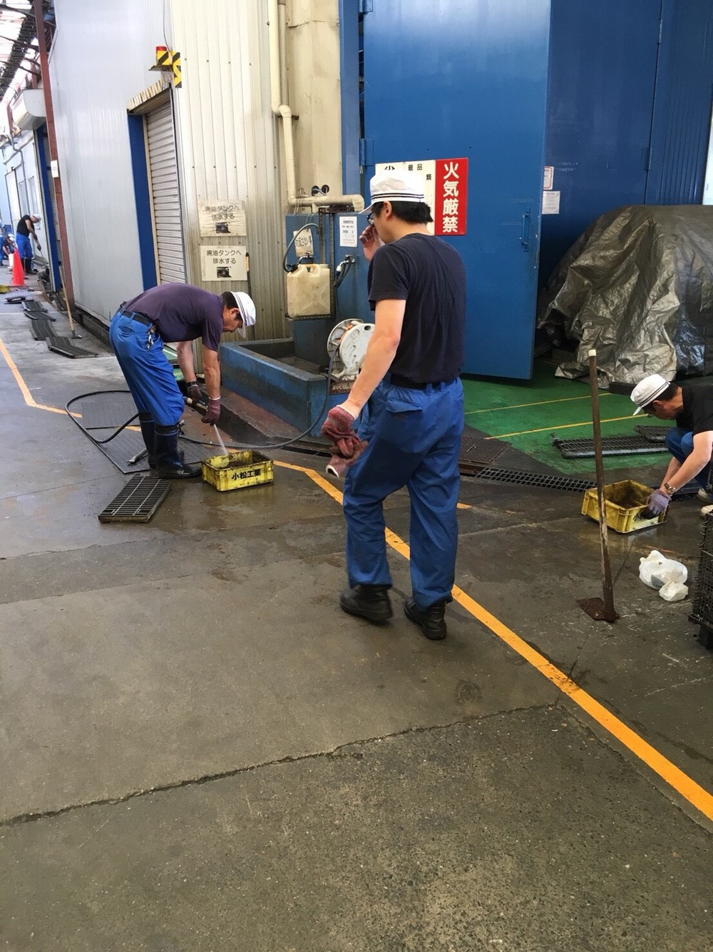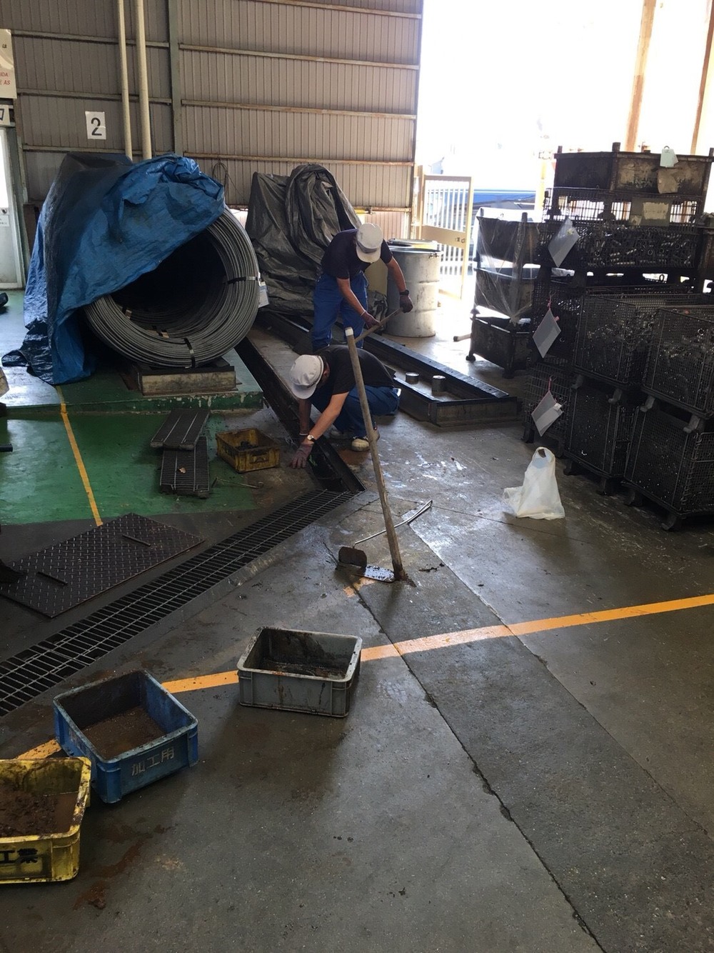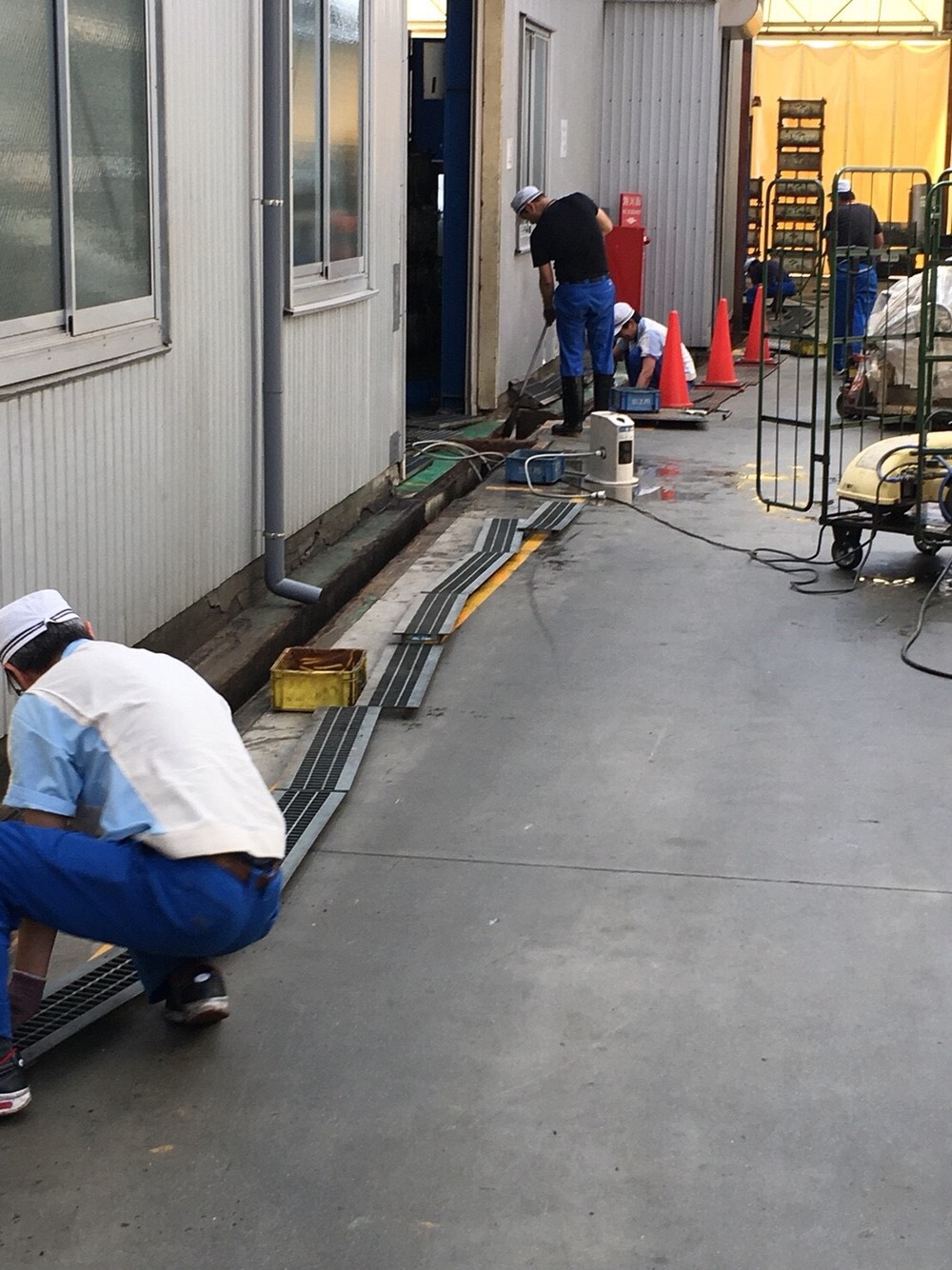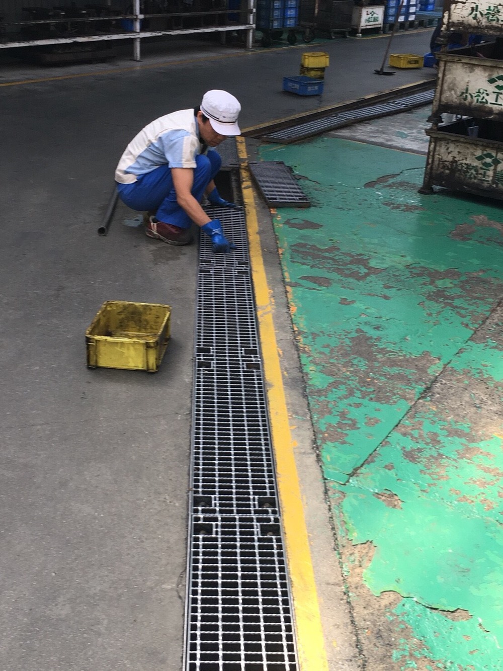 大雨対策と言う事で、土曜日を使って本社工場内の側溝清掃を行いました。