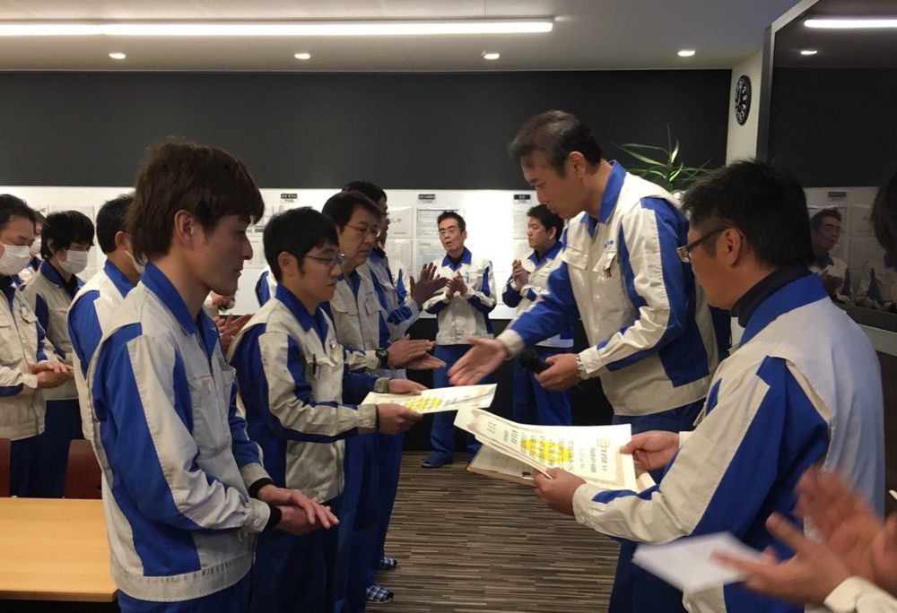 月初めの月曜日と言う事で全社員が集まっての朝礼の日です。