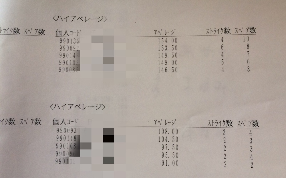 2ゲームのアベレージだそうです。ちなみに参加者の人数は70人越えでした
