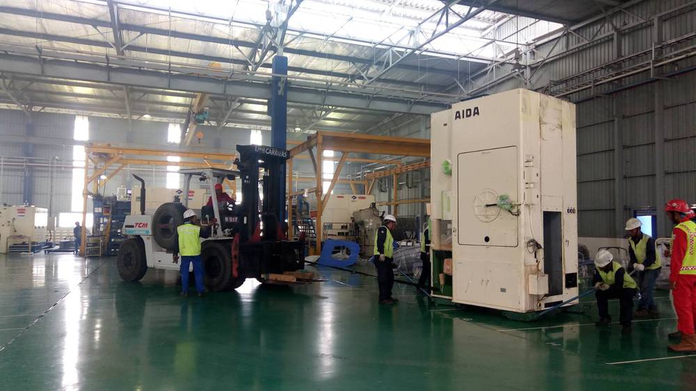 先月の630t冷間鍛造プレスに引き続き、400tの冷鍛プレスの増設です。