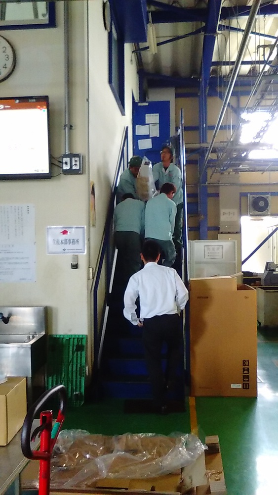 切断機に続き同日、輪郭形状測定器の搬入です。