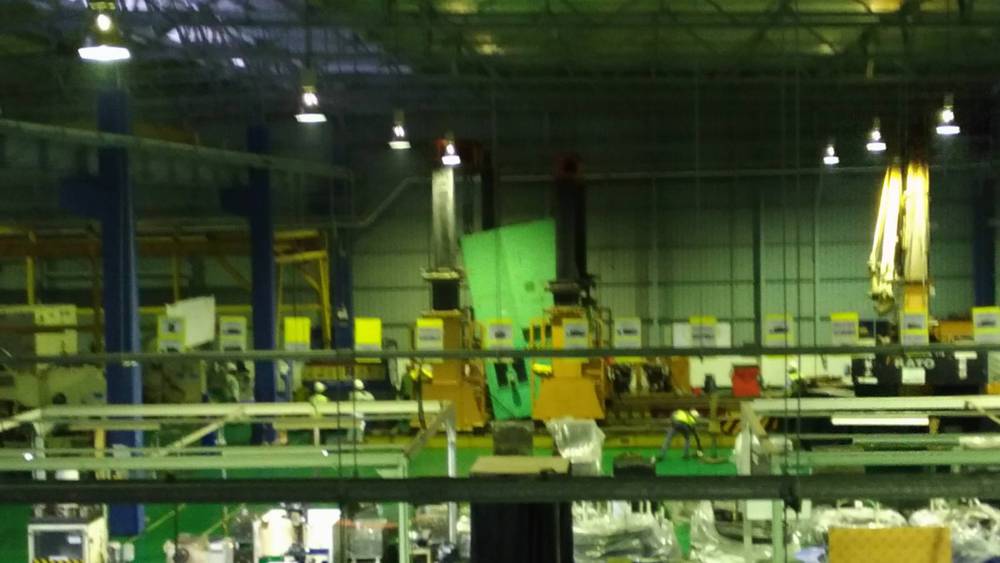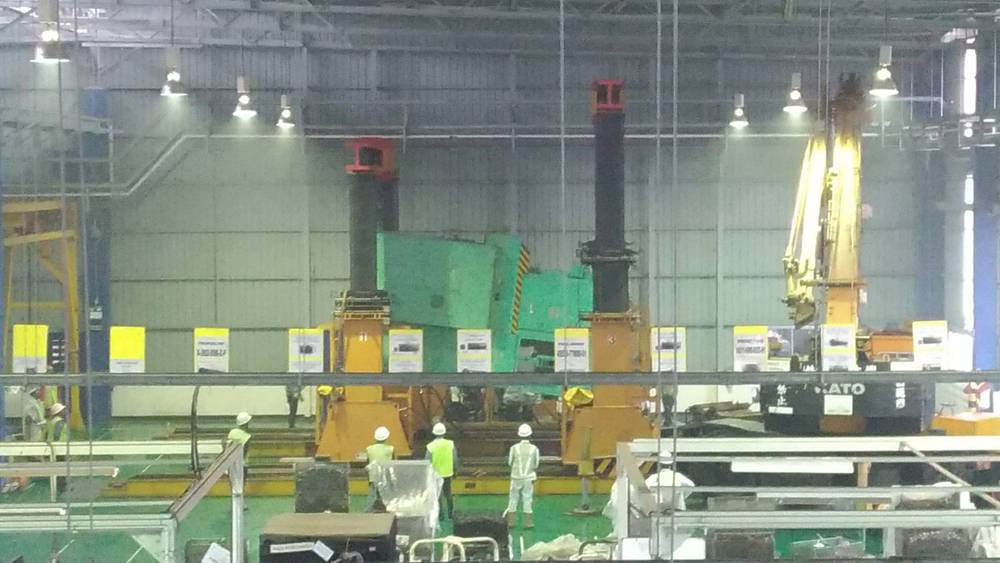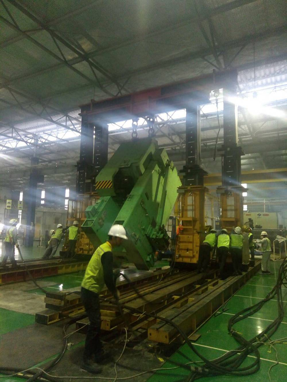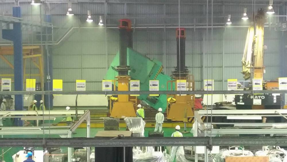 中央の緑色の鉄の塊が今回搬入の設備です。徐々に立ち上げていきます。