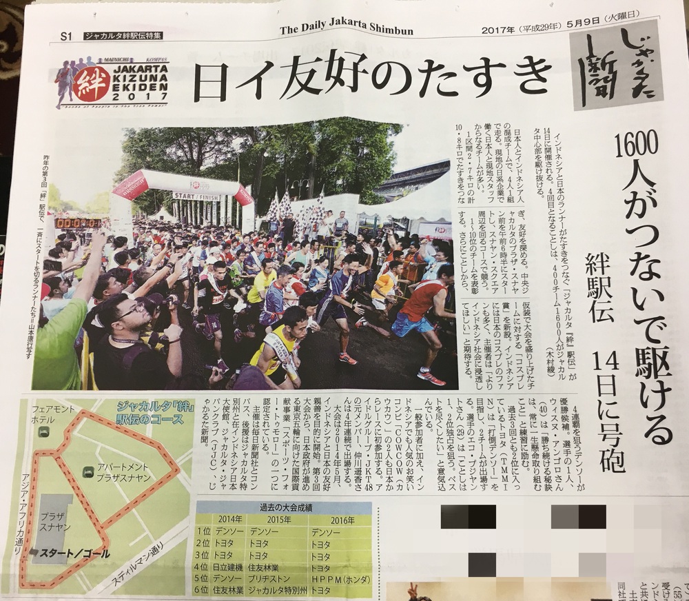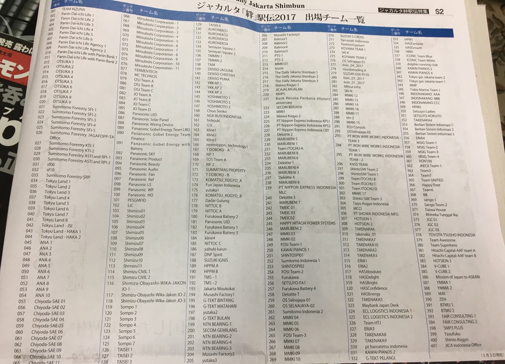 参加チームは、400。インドネシア人と日本人1,600人がたすきをつなぎます