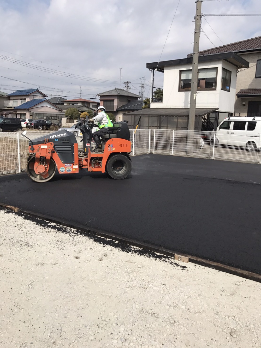 さらに同時進行で来客駐車場の舗装工事が行われています。