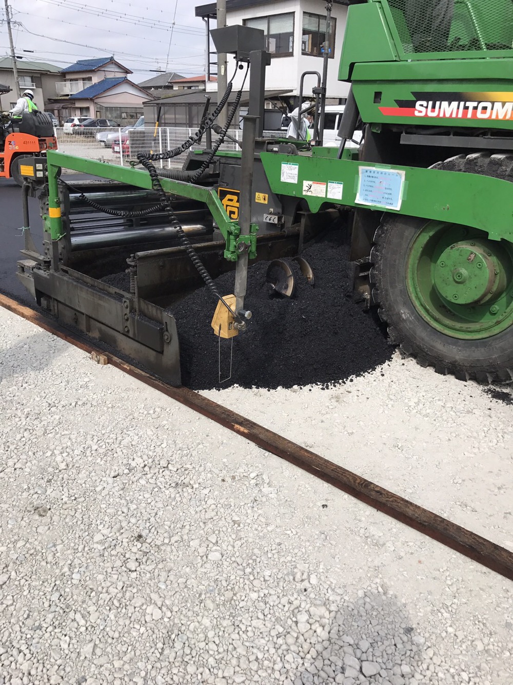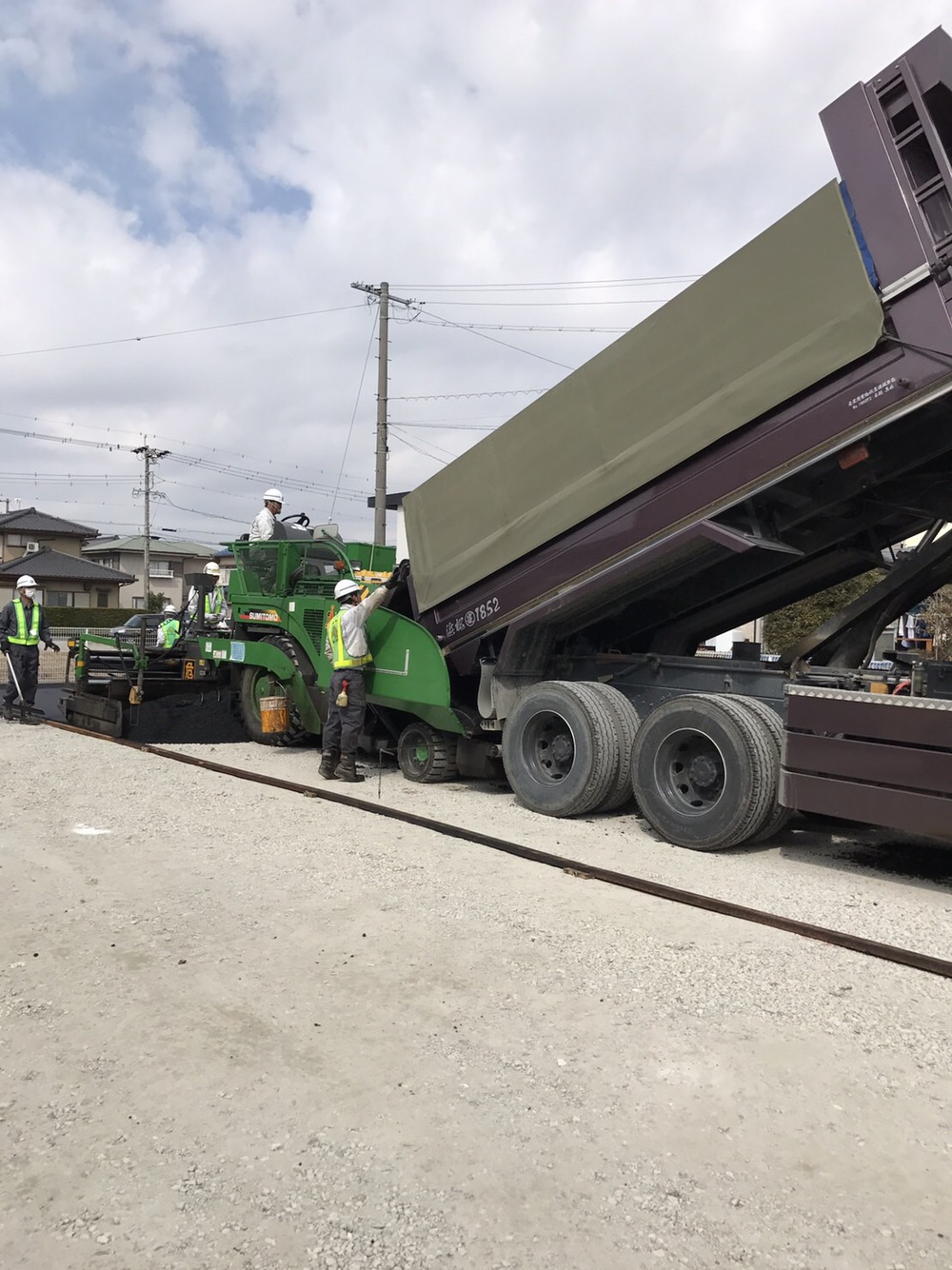 専用車を使用して手際よく舗装工事が進みます。