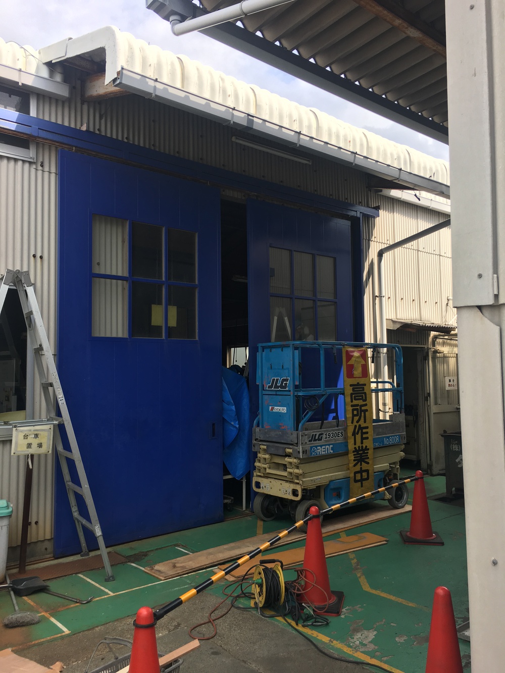 本日はハンガードアの可動部の交換工事を業者さんが行なっています。かなり時間が掛かりそうです。
