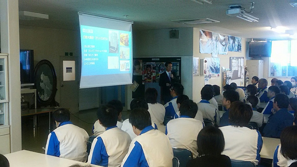 日頃、当社社員の出張の手配をお願いしてます旅行会社さんから、詳細のスケジュール確認や現地気候、現地の習慣等々をパワーポイントの資料にて説明して頂きました。