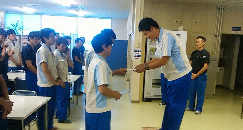 日本語検定 N4級に当社の実習生2名が合格。今月の全体朝礼で表彰を受けました。