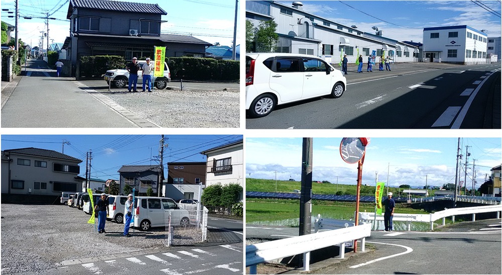社員の皆さんの出社に合わせ、安全運転、シ-トベルトの装着の呼びかけをします。