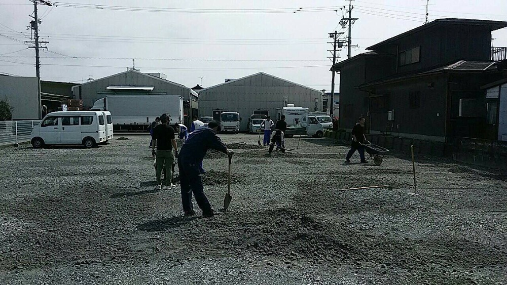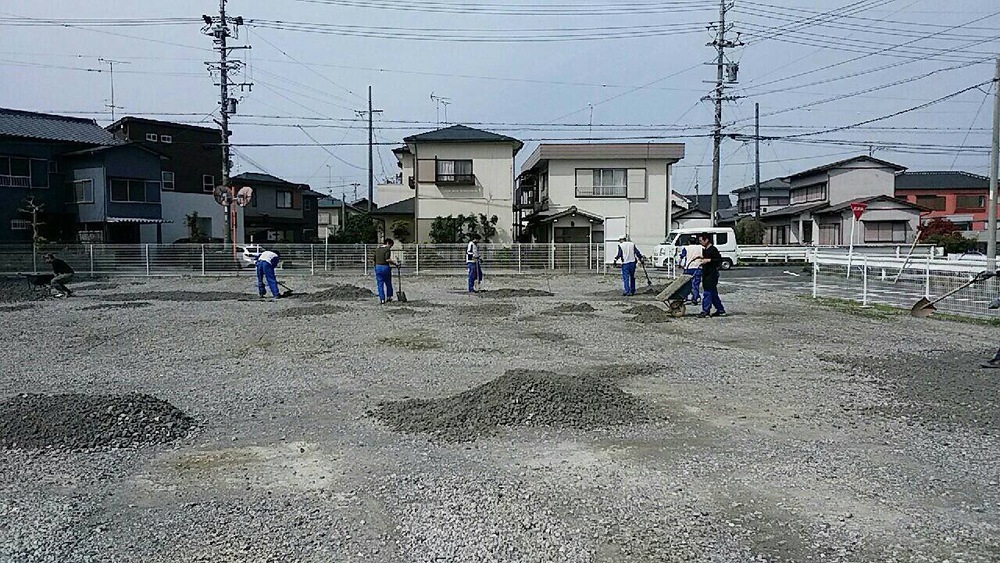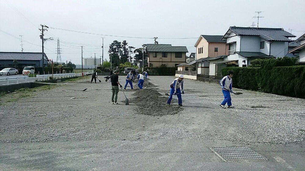 社員駐車場の整備のため休日返上で管理職皆で作業です
