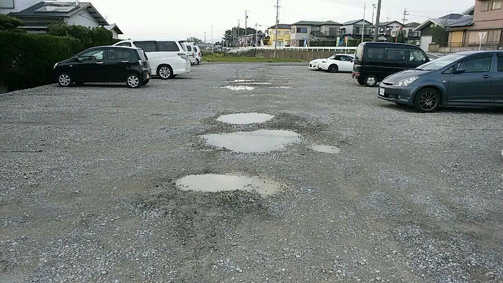 雨が降るとこの様に大きな水溜りが。