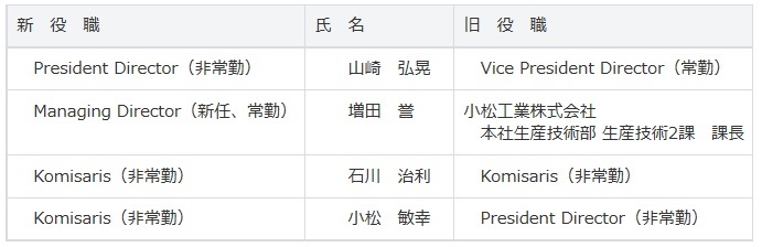 PT.KOMATSU KOGYO INDONESIA 役員就任に関して