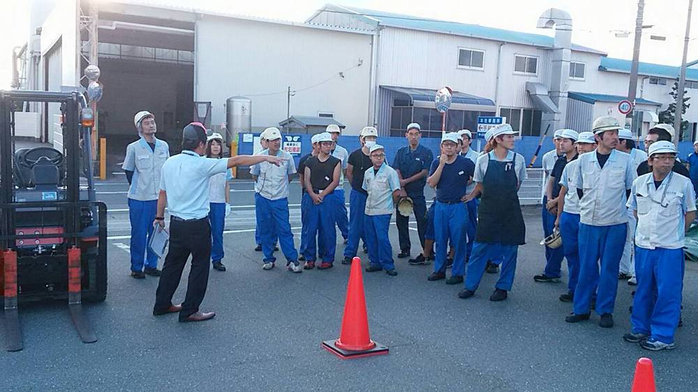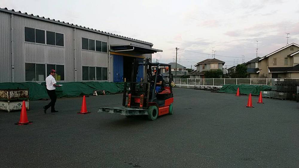 本日、フォークリフトの安全講習(実技編)をトヨタL&F様2名の協力のもと実施致しました。