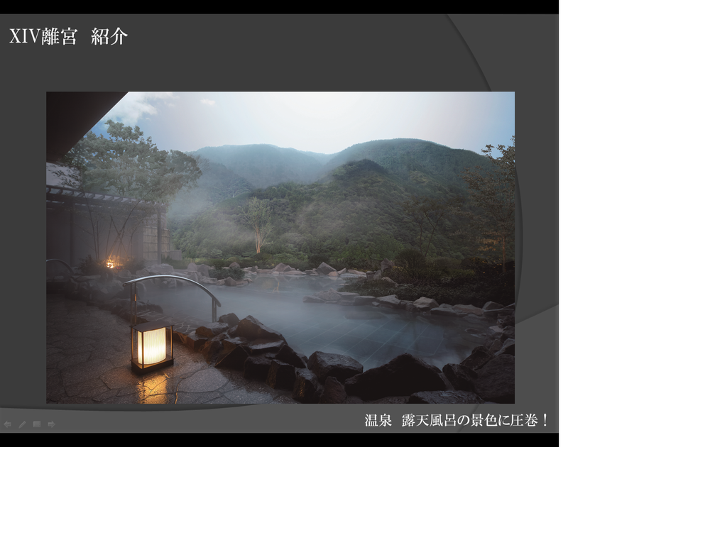 ★まずはモニターとして先発隊2組がエクシブ箱根離宮に宿泊してきた訳ですがこの写真を見ているだけでも何だか非日常的、別世界にいるような錯覚を覚えます・・。さぞ楽しかったのでは・・・。