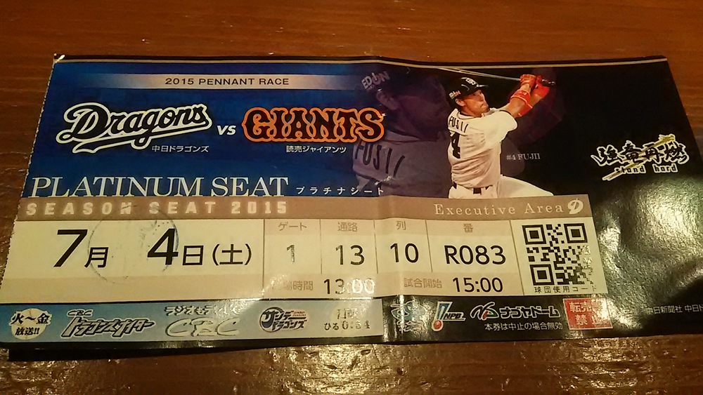 本業とは関係ありませんが、只今名古屋ドームでプロ野球観戦中。