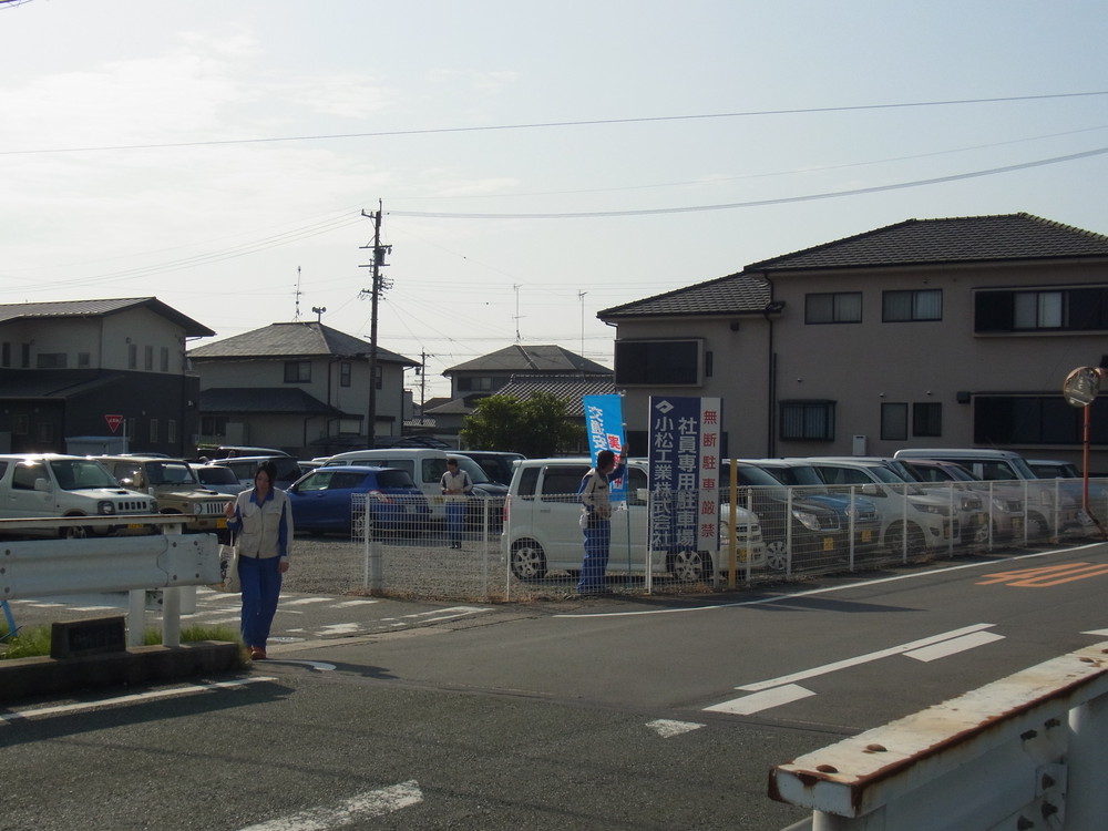 交通安全運動の一環として朝の通勤時間に安全運転の呼び掛けを実施しました。