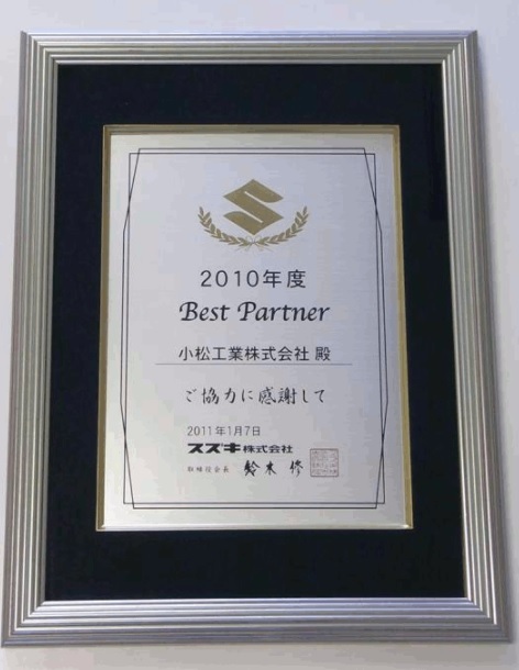 この度小松工業は主要取引先であるスズキ株式会社様より、2010年度の