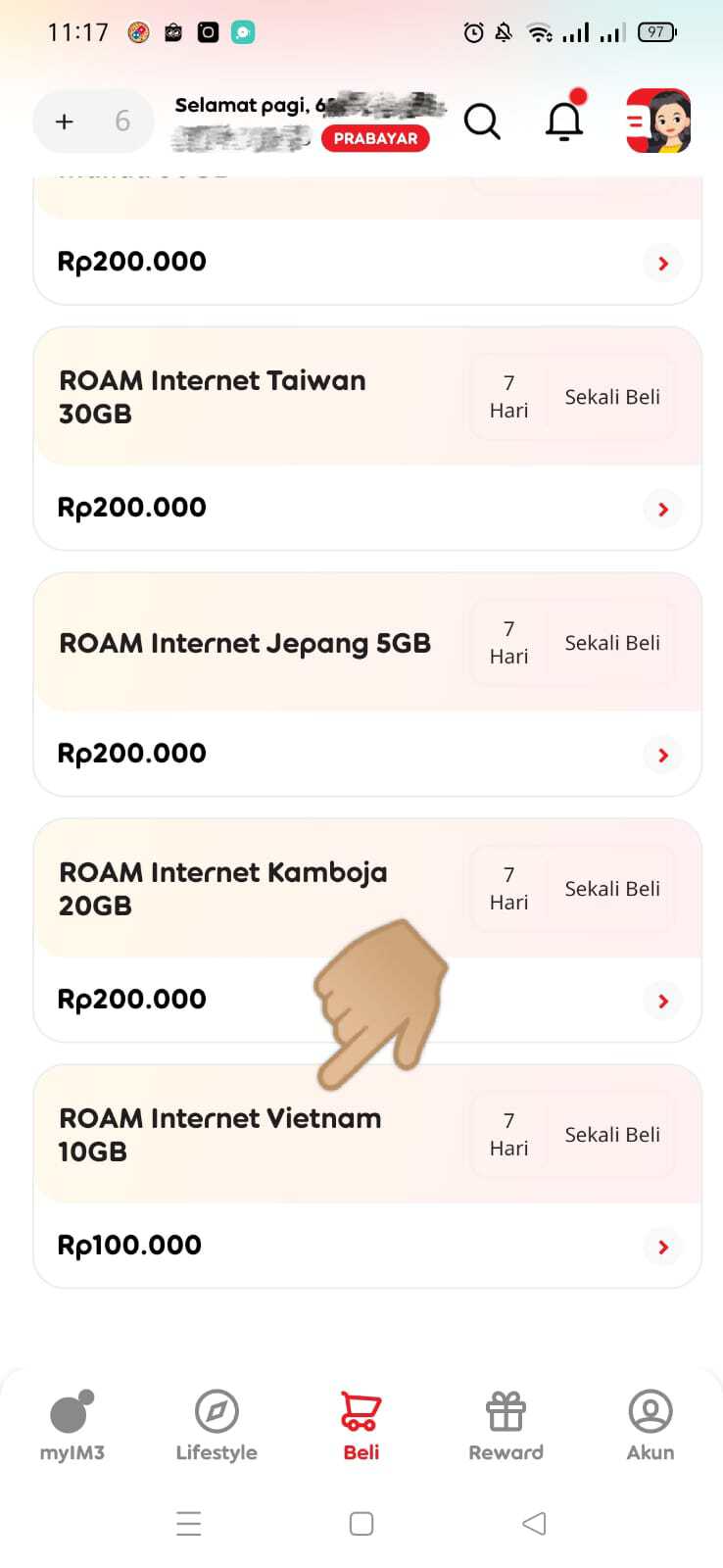 setelah beli paket , saat tiba di tujuan tinggal data roamingnya nyalakan saja .