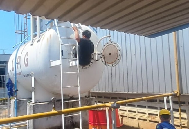 Kami melakukan pemeriksaan hukum terhadap tangki LPG di belakang perusahaan.