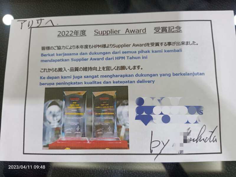 nanti dapat lagi supplier award supplier award !