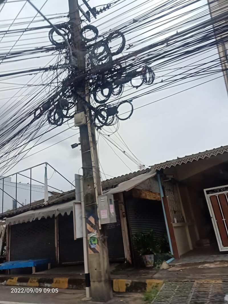 客先に行く途中ですが、タイはなんかすごく電線が張り巡らされていて、お店の前とかも