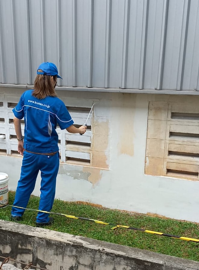 gara gara bangunan KOMATSU setiap hari terus menerus kena sinar matahari , kami melakukan perawatan .