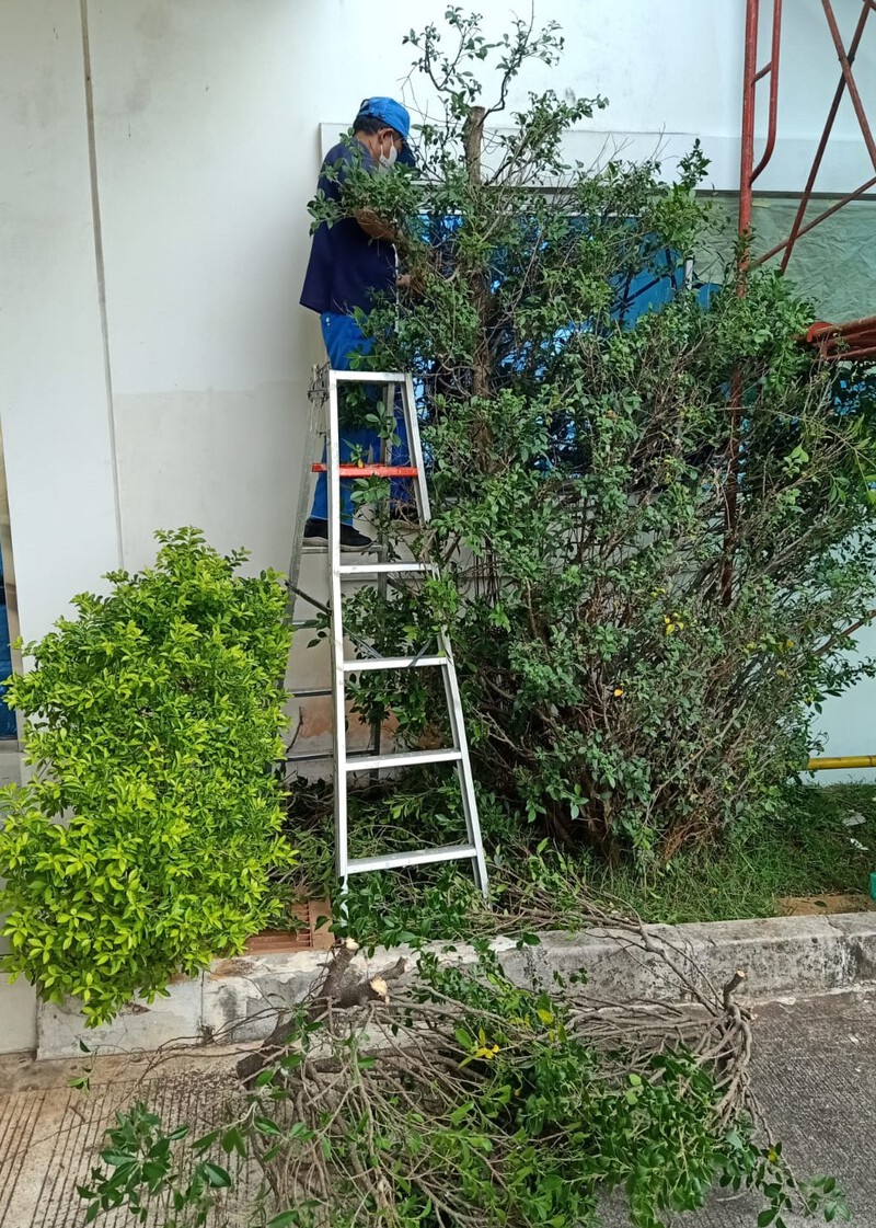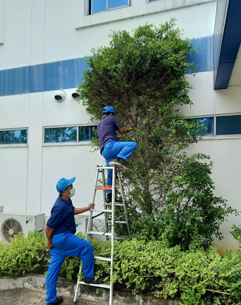 karena sudah tumbuh sembarangan , maka udin san yang khusus hewan dan tumbuhan melakukan merapikan daun .