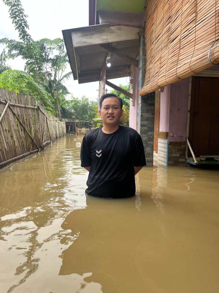 saat ini dia saja kena banjir , tapi hari kedua sudah masuk kerja . Hebat sekali !!!